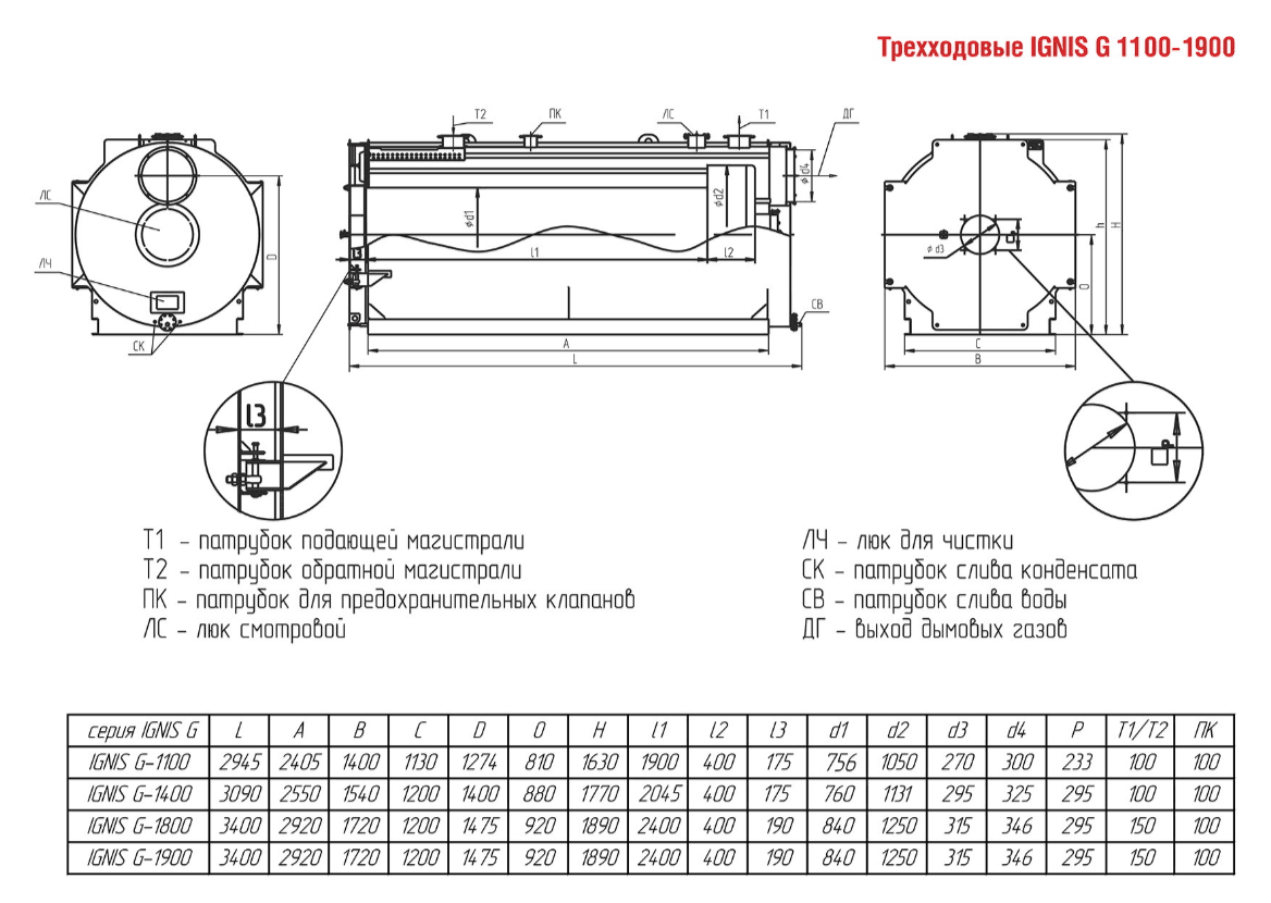 Технические характеристики водогрейного трёхходового котла ARCUS IGNIS G-1400