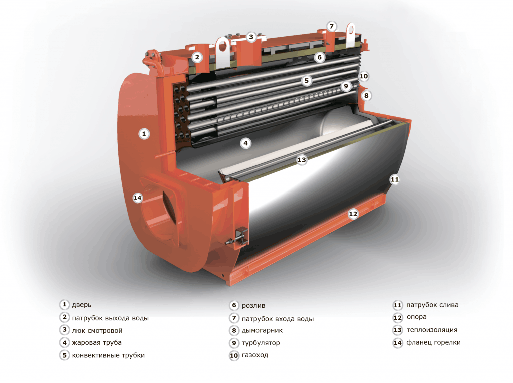 - автоматизированная система управления упрощает эксплуатацию: для работы достаточно задать параметры включения горелки или требуемую температуру теплоносителя.
