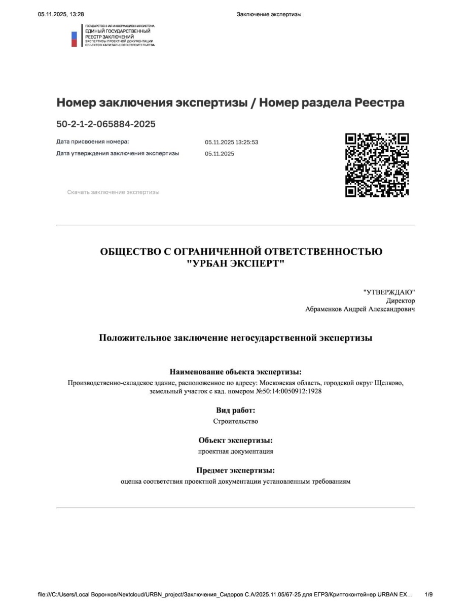 Ключевая задача: Создать рабочий проект, который пройдет экспертизу и получит положительное заключение. Создать индивидуальное решение, которое будет реализуемо на практике.
